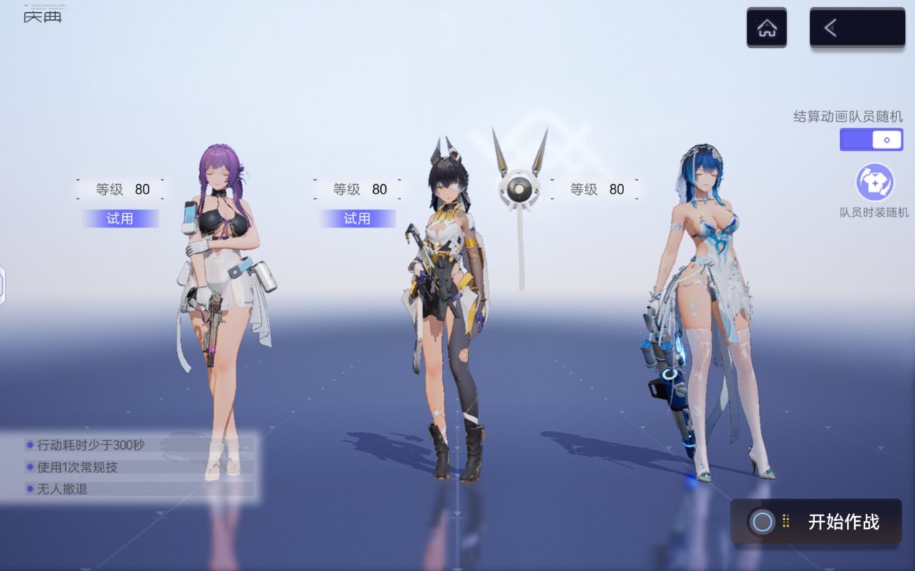 慶典關卡,我推薦換成狂詩,搭配試用喵汐兒的支援技,機槍瘋狂輸出就行,其他養成高的角色隨意
