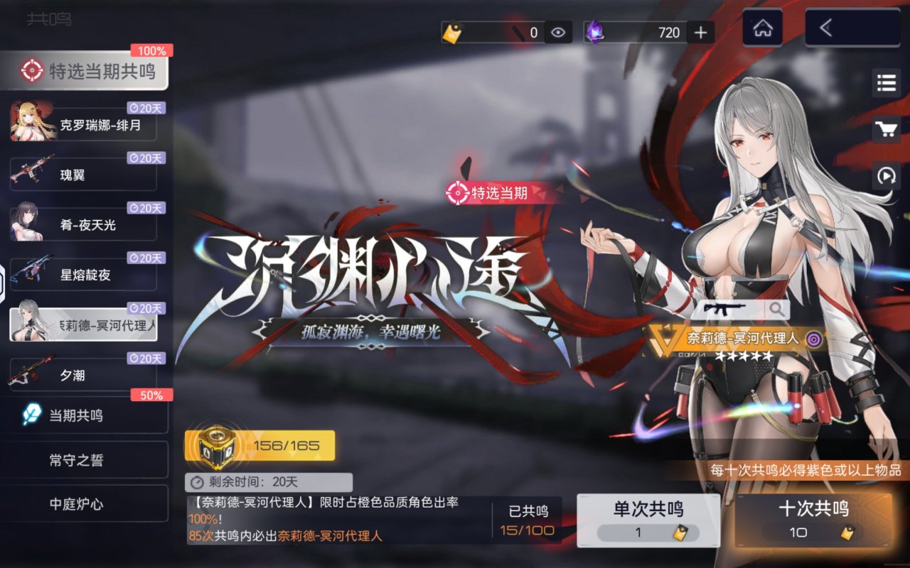 ✧【特選當期·沉淵心途】共鳴活動中,最多100次共鳴必100%獲得橙色品質角色【奈莉德-冥河代理人】。該共鳴活動屬於【特選當期角色共鳴】,與同類型共鳴活動的保底機制共享。