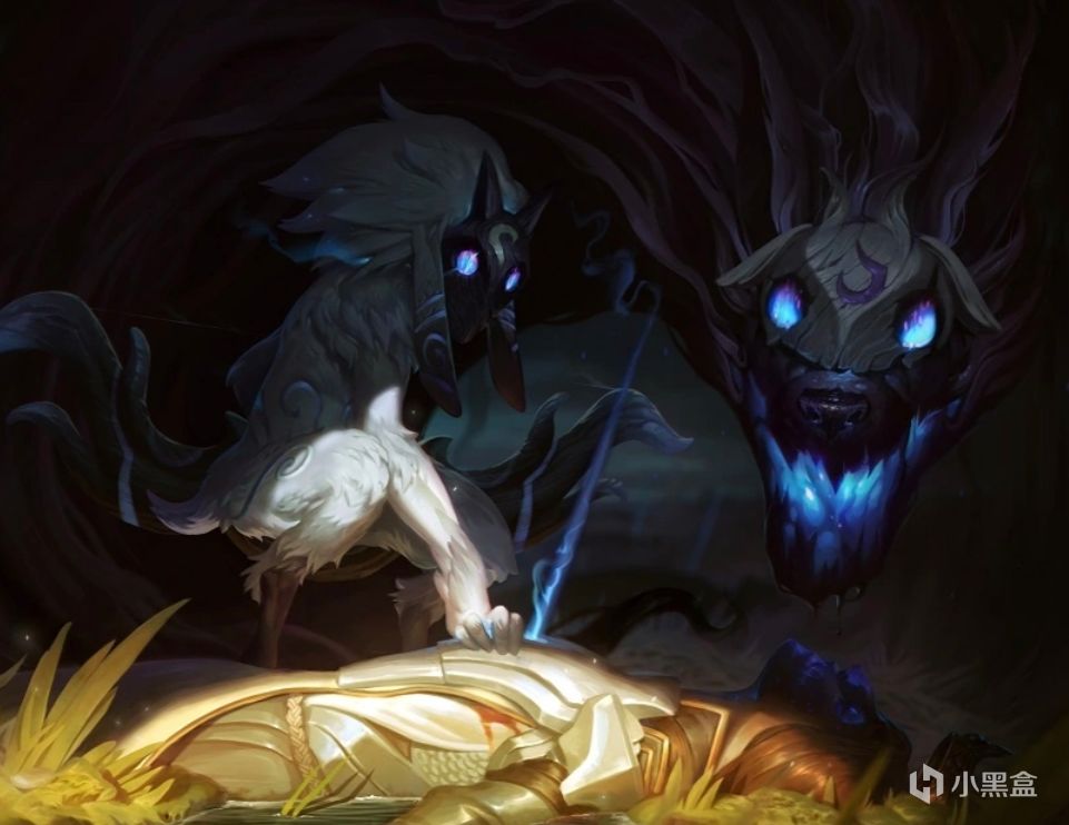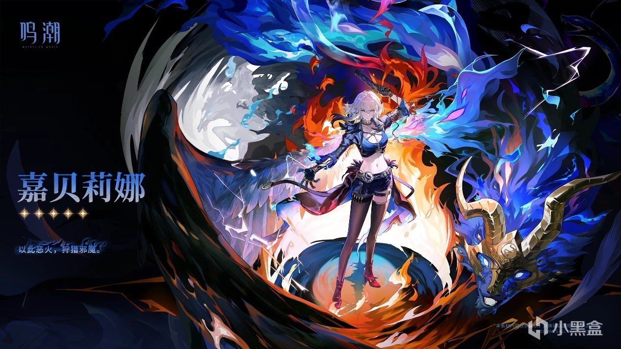 來看嘉貝莉娜的立繪,往常的角色立繪主題大都是一個主色調,比如說小卡和守岸人是藍色,長離是妖豔的紅色這嘉貝莉娜卻是雙色調一紅一藍,2.6卜靈說嘉貝莉娜留下的能量像是黑潮和共鳴能力碰撞出來的,從立繪上能看到她只有帶着巨大黑色羽毛的單邊翅膀八成歸屬於黑潮,另一邊藍色的火焰應該和她的共鳴能力息息相關,右下角這個羊頭惡靈應該就是2.6彩蛋裏跟嘉貝莉娜聊天的黑潮造物。