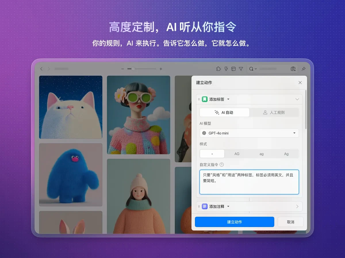 ⚡ AI Action - 批量导入的图片,自动完成命名、标签、分类