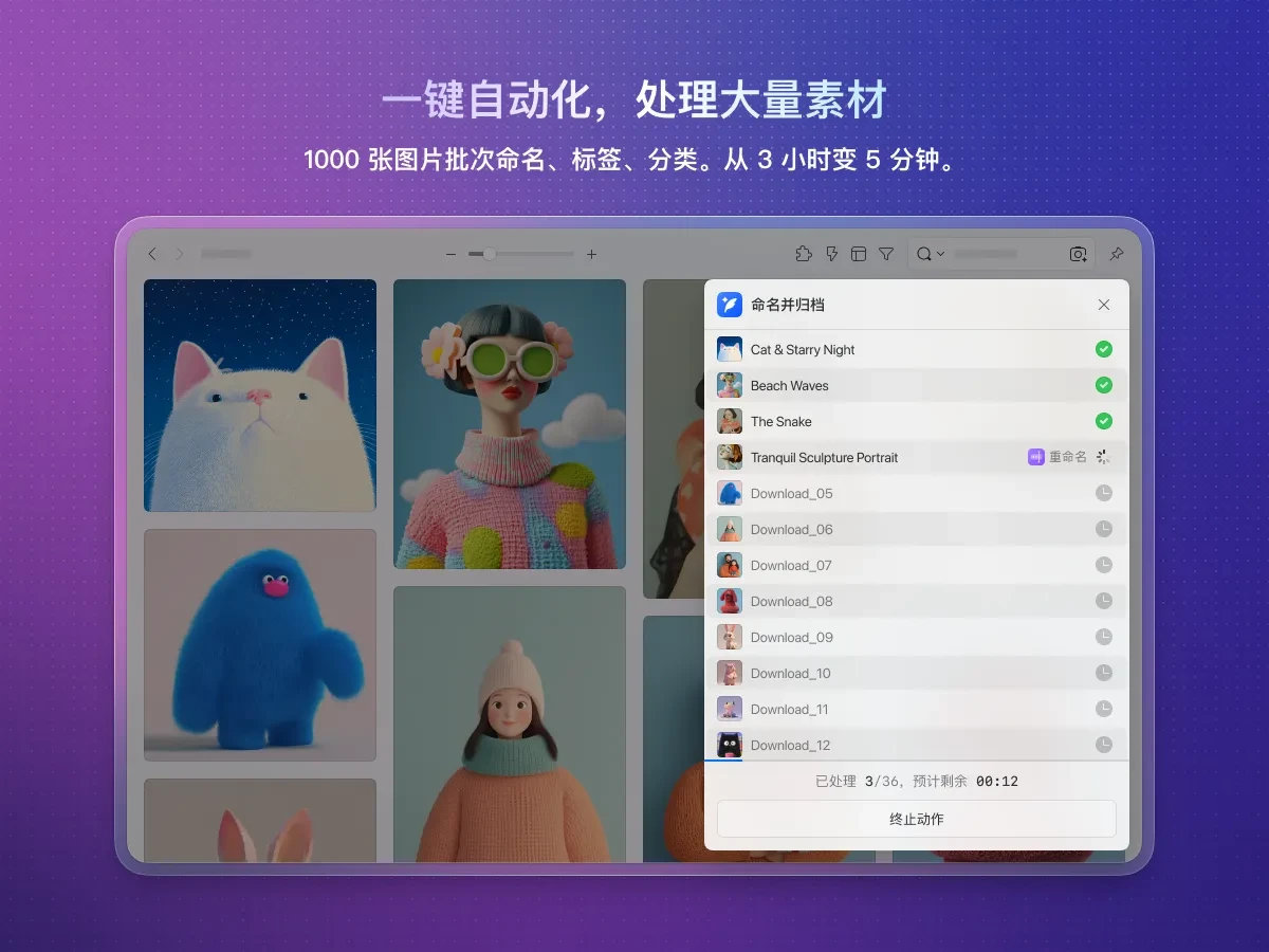以前: 花 2 小时一张张改名、打标签、分类... 最后累到放弃