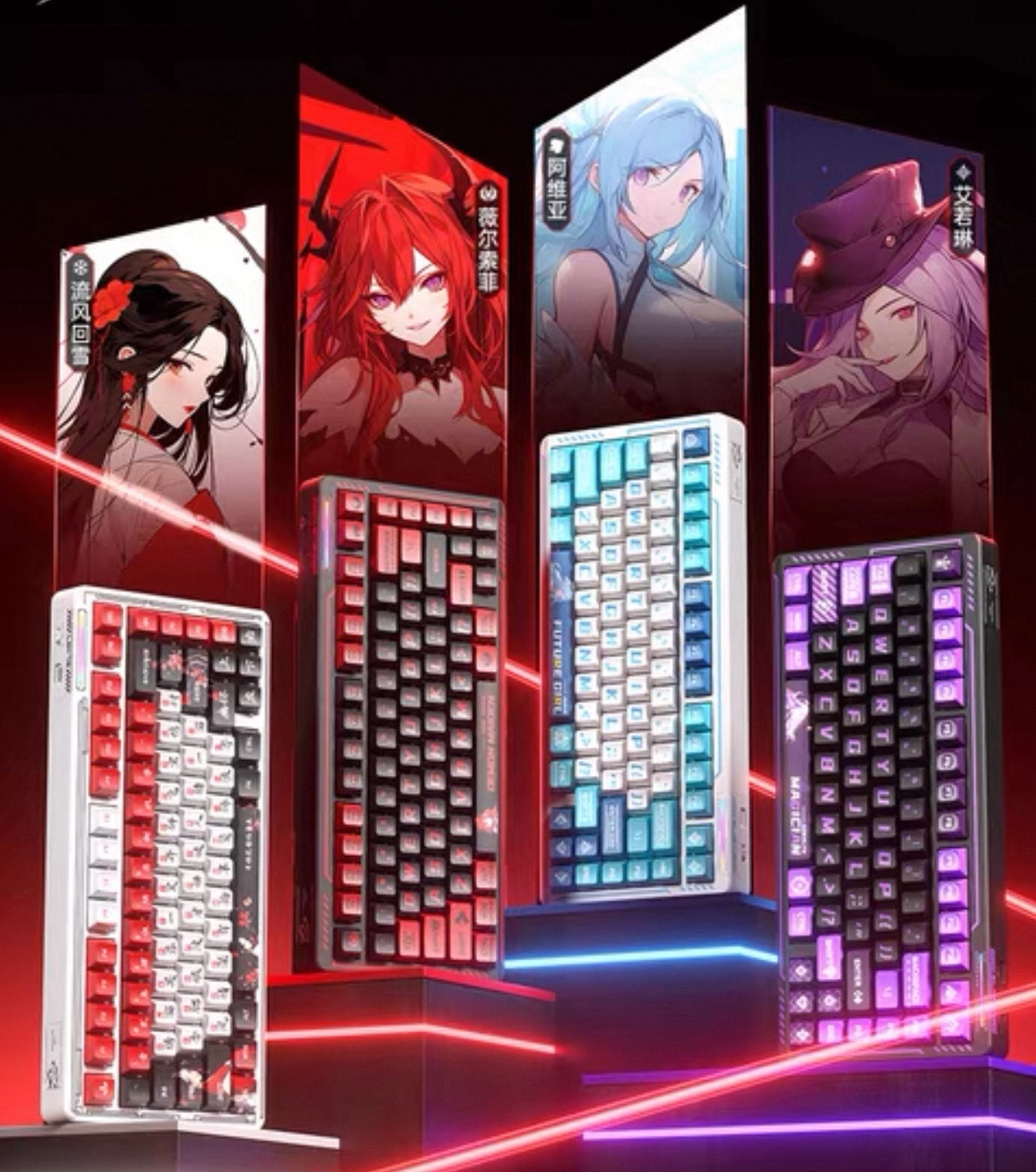 国补价152起,这把键盘外观就很二次元,多款配色可选;背部一块超大二次元图案,键帽以及四周也有独特图案;