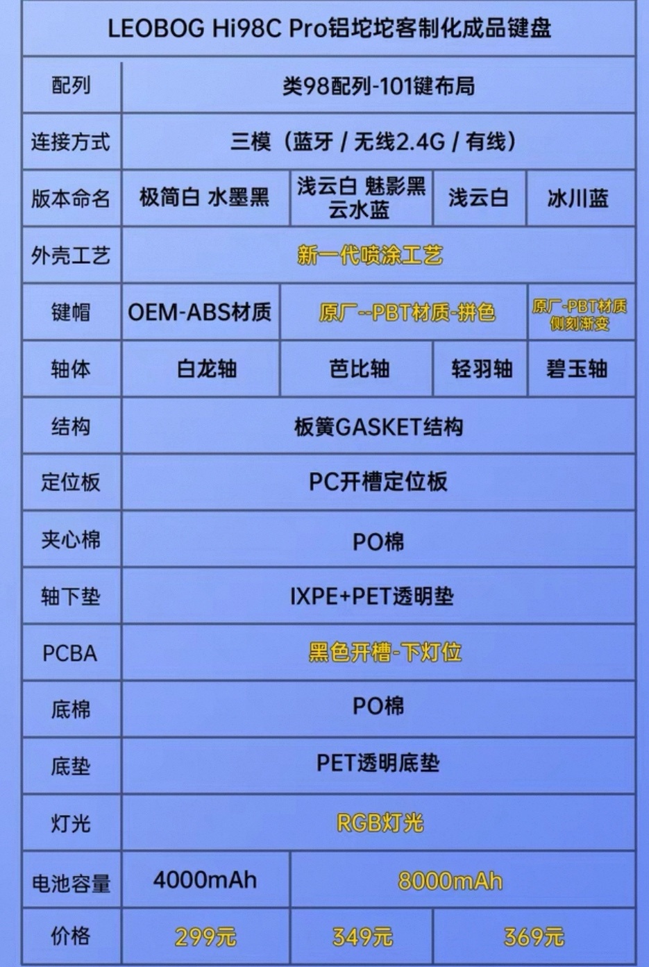 9月初上线,299全铝CNC镂空键盘,再次卷到起飞;几个颜色配置一样,价格贵在配色;