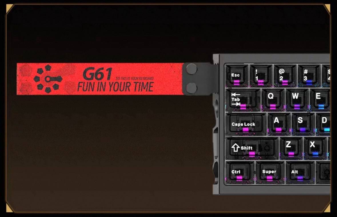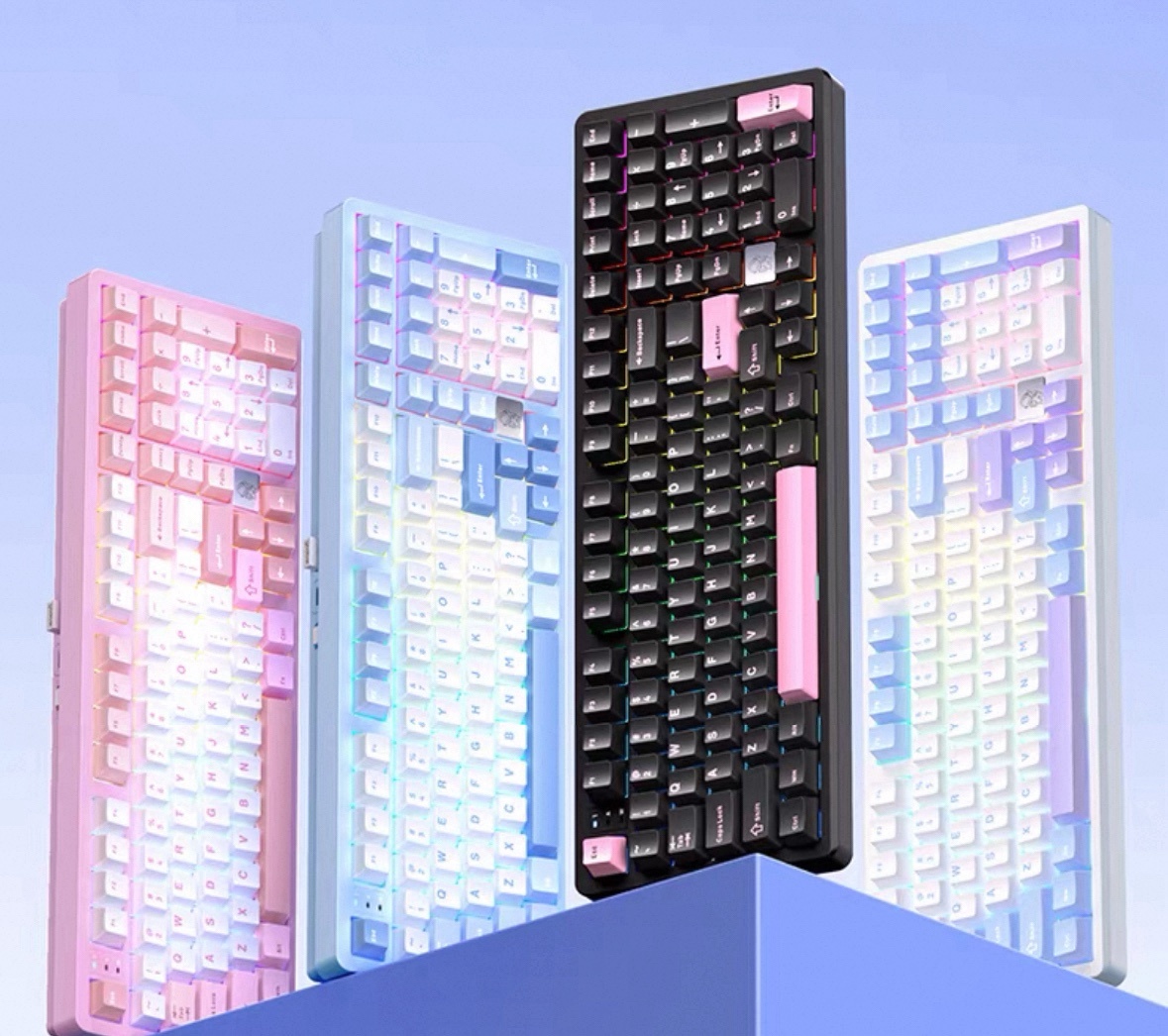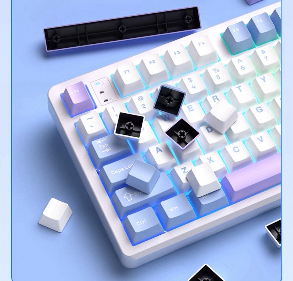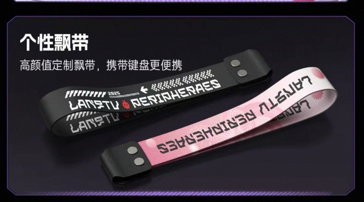 左侧带飘带,四面拼接加镂空,PC透明键帽,观赏性十足