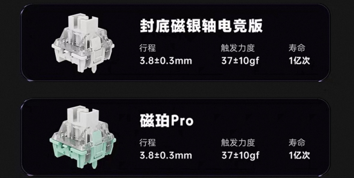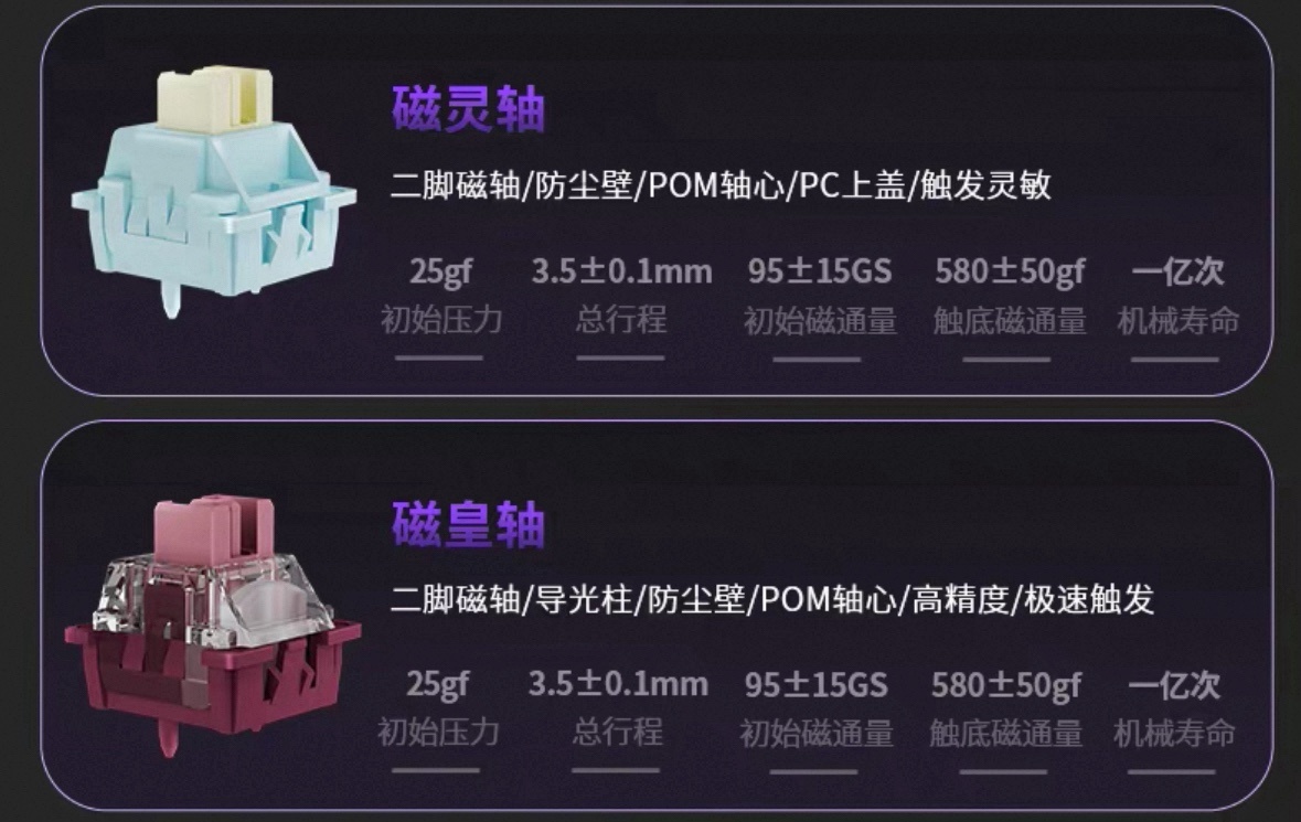 目前是有两款轴体一个是云磁轴;一个是凯华定制旗舰星磁轴;低配云磁轴,我认为就够用了;