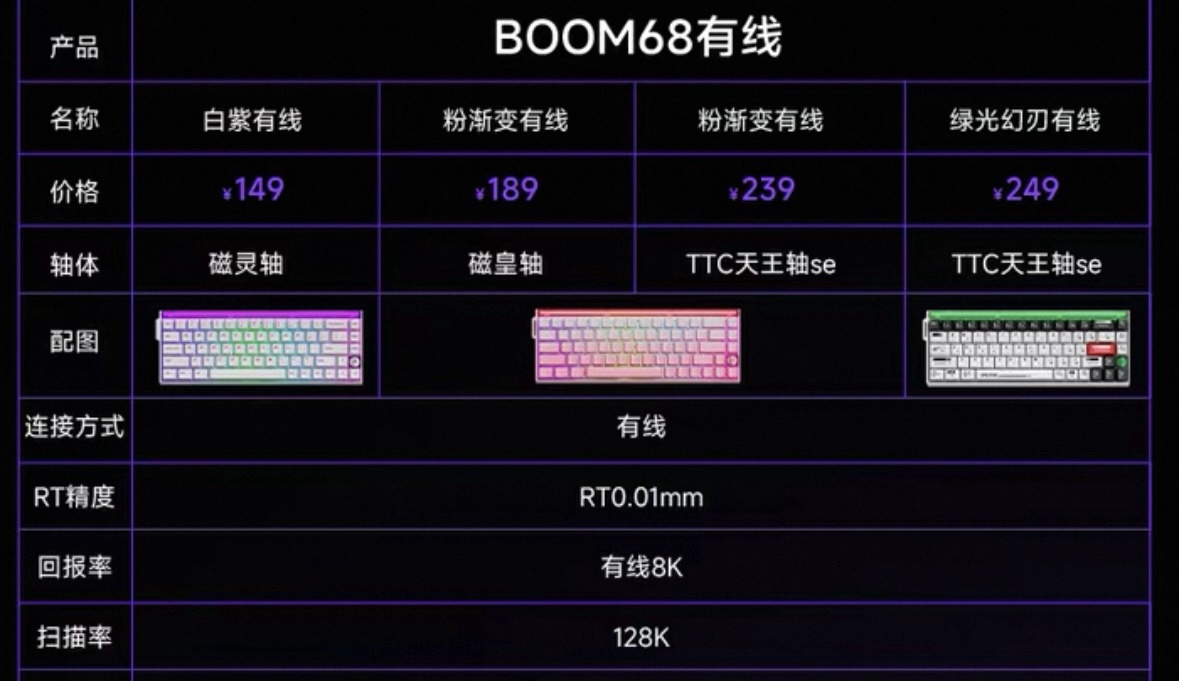 价格269起,号称年轻人的第一把磁轴键盘,右上方独特的CNC金属旋钮,刻度感十足,支持各种功能;