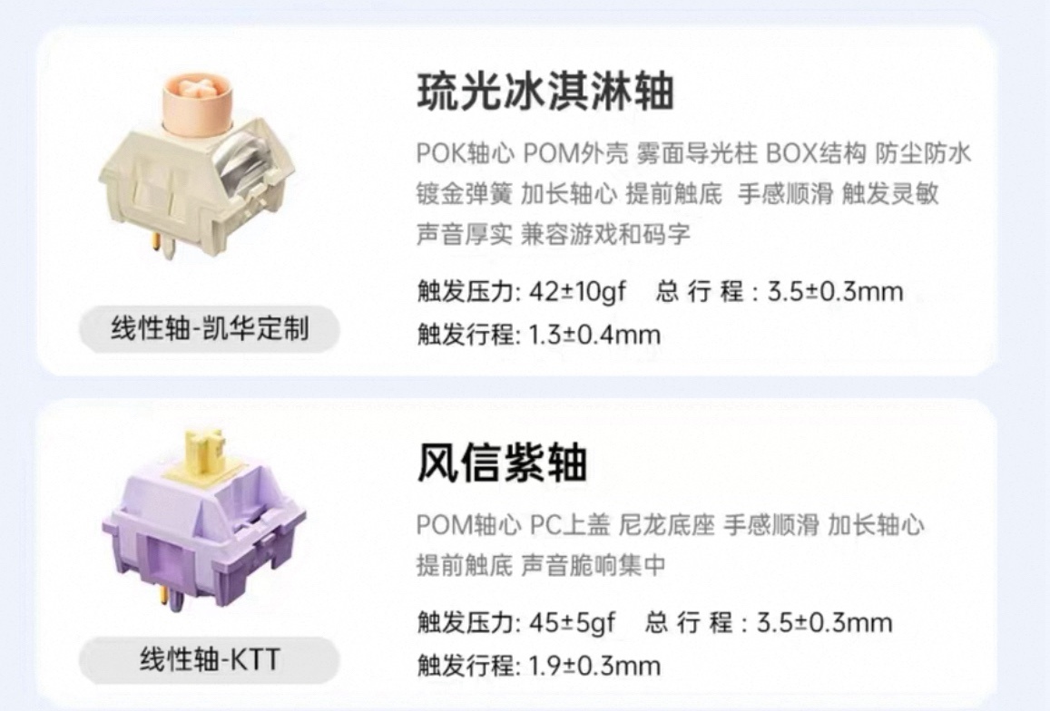 两款轴体我认为都很不错,其中的风信紫轴我在之前有用过;