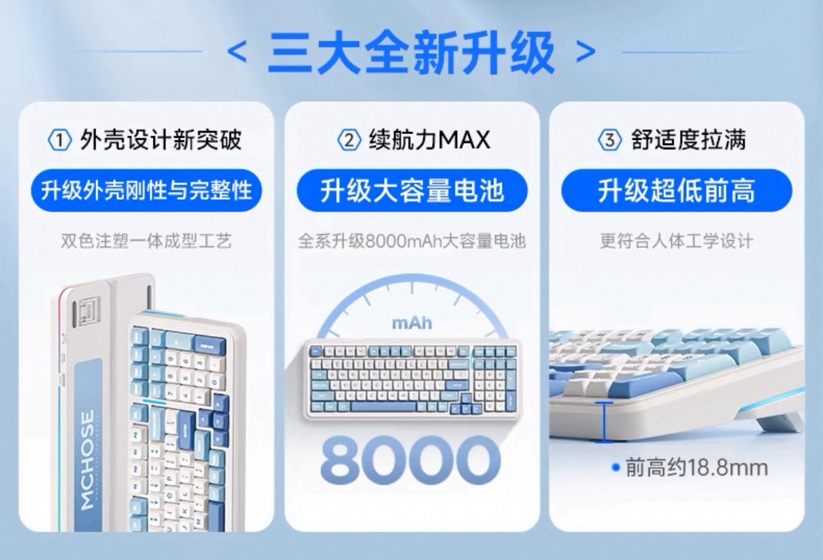 可国补价格200-270,多款旗舰轴体可选;12000mAh大电池续航无忧;