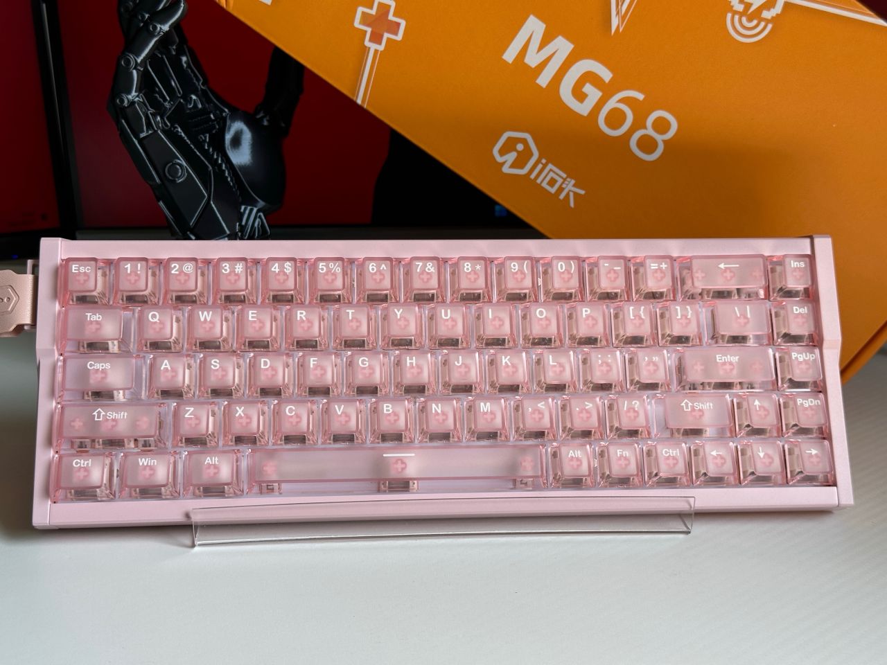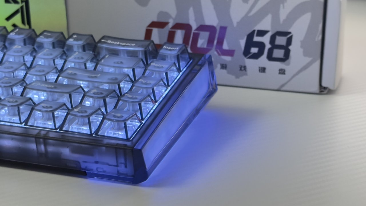 首发时就拿到过一把冰岩黑,全雾透机身+雾透键帽+全透轴体,颜值相当高;