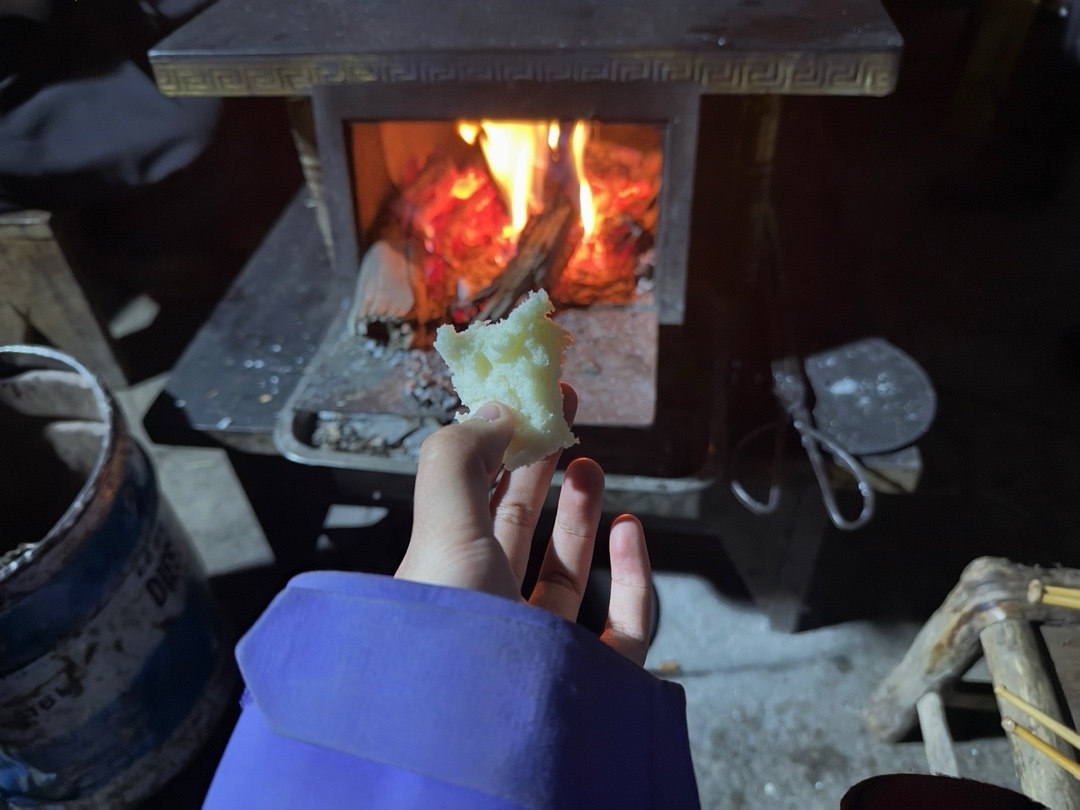 结果扎营点附近有一家牧民哈哈哈哈哈,队友社交牛逼症和牧民唠嗑,牧民让我们去他家吃东西烤火哈哈哈哈,很暖和!但是这个地方真的很不错,风小水源多地势平坦