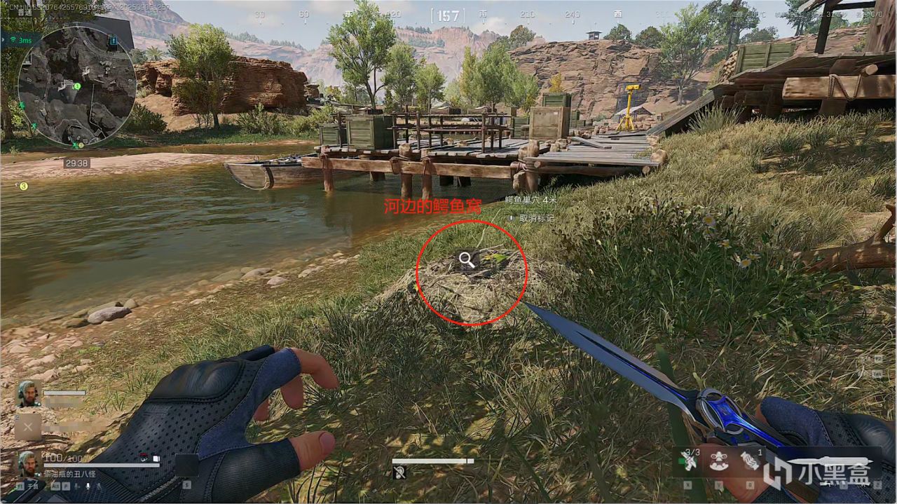 該鱷魚窩在阿米亞小鎮下方的隨機撤離點位置,就在河邊的樹底下。