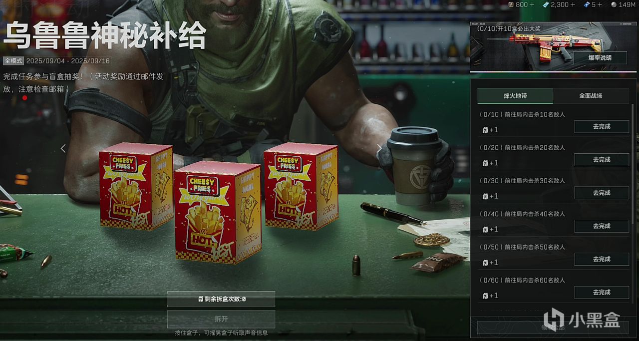 在烽火行動及全面戰場完成擊殺任務可獲得盲盒(擊殺人機也算),拆盲盒有機會開出限定獎勵!獎勵內容如下: