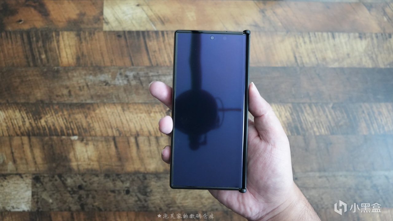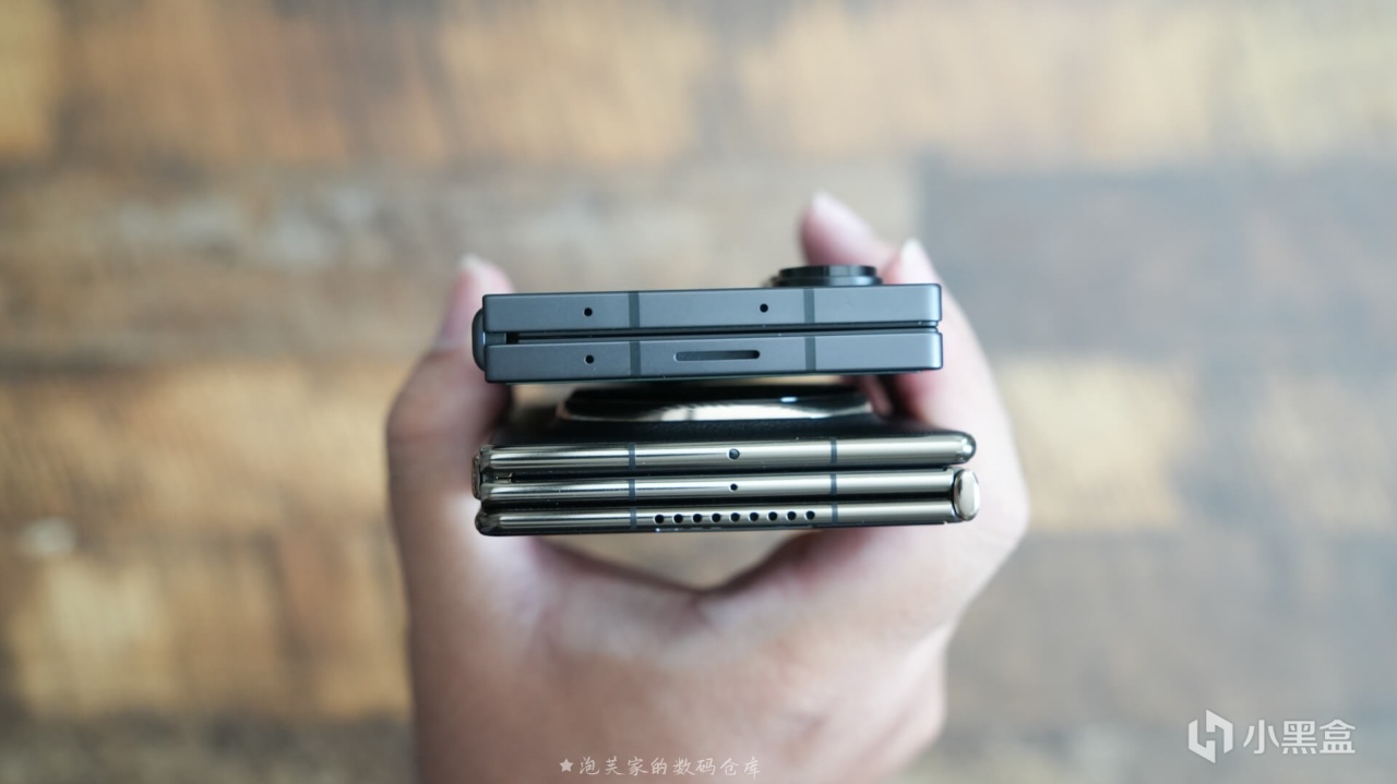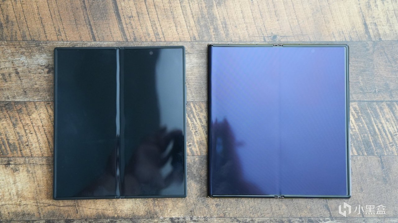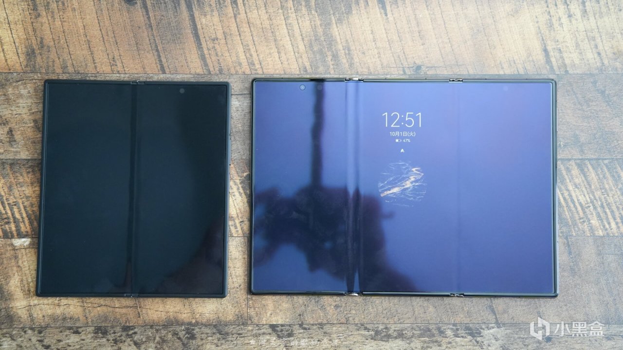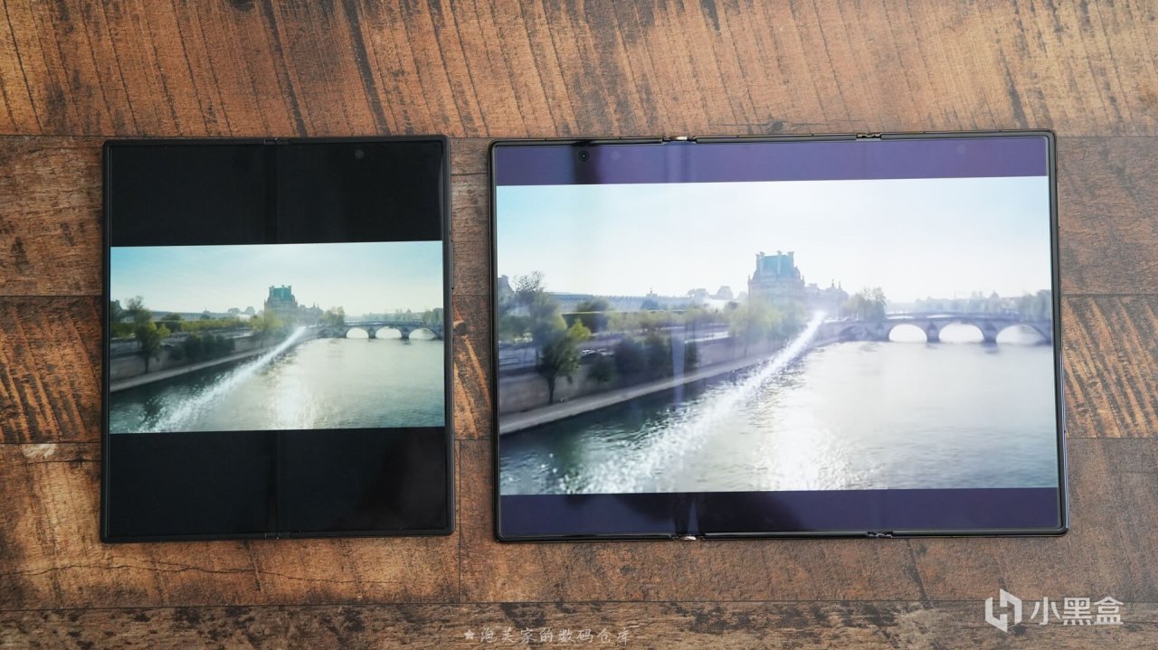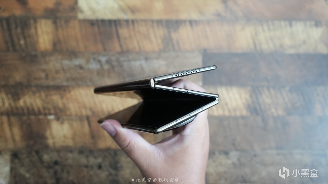 展开到双屏态,尺寸和其他品牌的书本型折叠屏相近,但背面会有一块未展开的屏幕,总让人担心会被刮到;