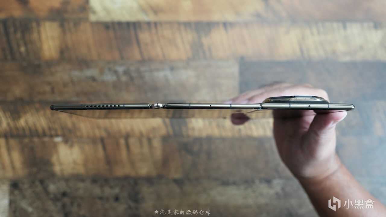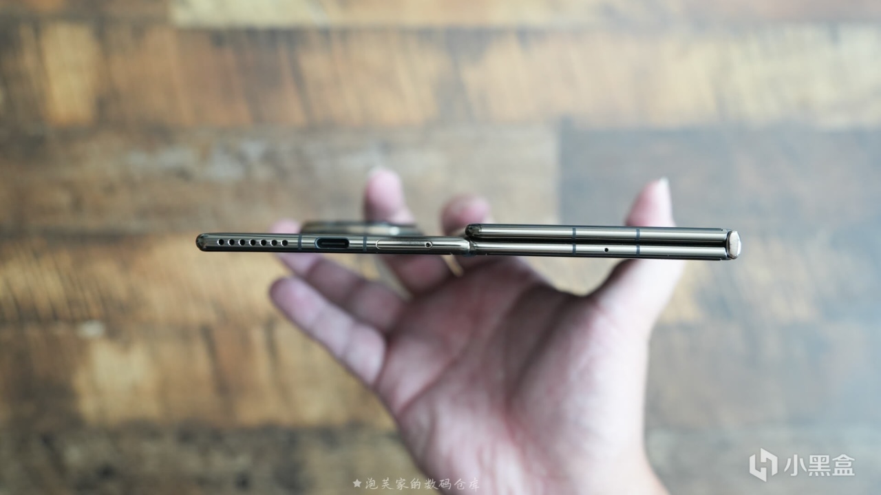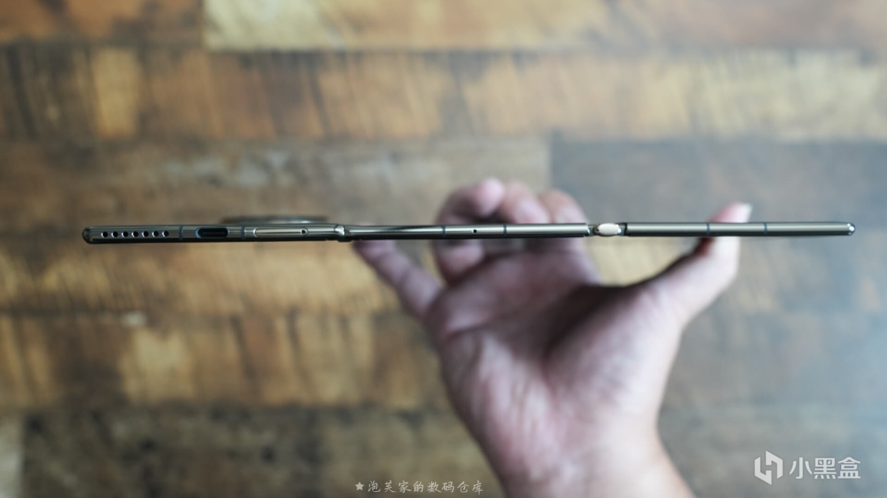 完全展开后最薄处仅3.6mm,5600mAh硅负极电池(典型值,额定容量5500mAh)能塞在这么薄的地方,而且电池厚度仅1.9mm,这种空间利用率的技术实力确实厉害;不过USB-C接口所在的位置厚度4.75mm,即便如此,拿在手里还是薄得吓人,总担心会不小心折断。