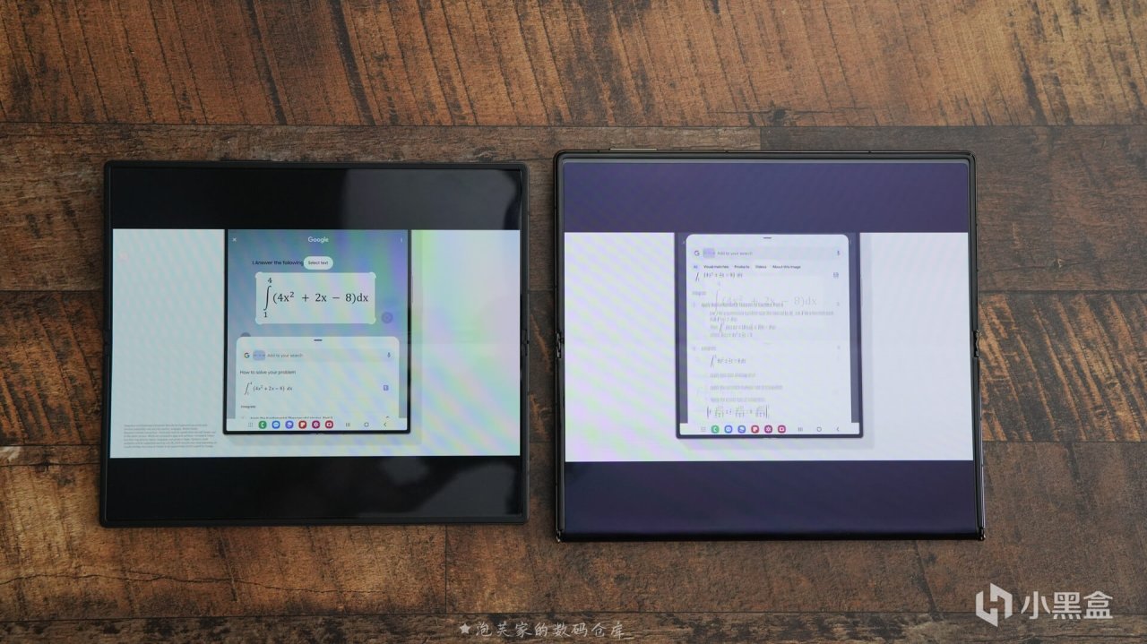 对比屏幕亮度,和单屏模式时一样,没感觉到明显差距,我反而很好奇华为是怎么在切换屏幕模式时调节亮度的,或许是保持了相同的亮度,所以视觉感受没变化?不过好在不用为了适配内容特意调整机身方向,只要根据需求展开屏幕就行,这点还是很方便的。