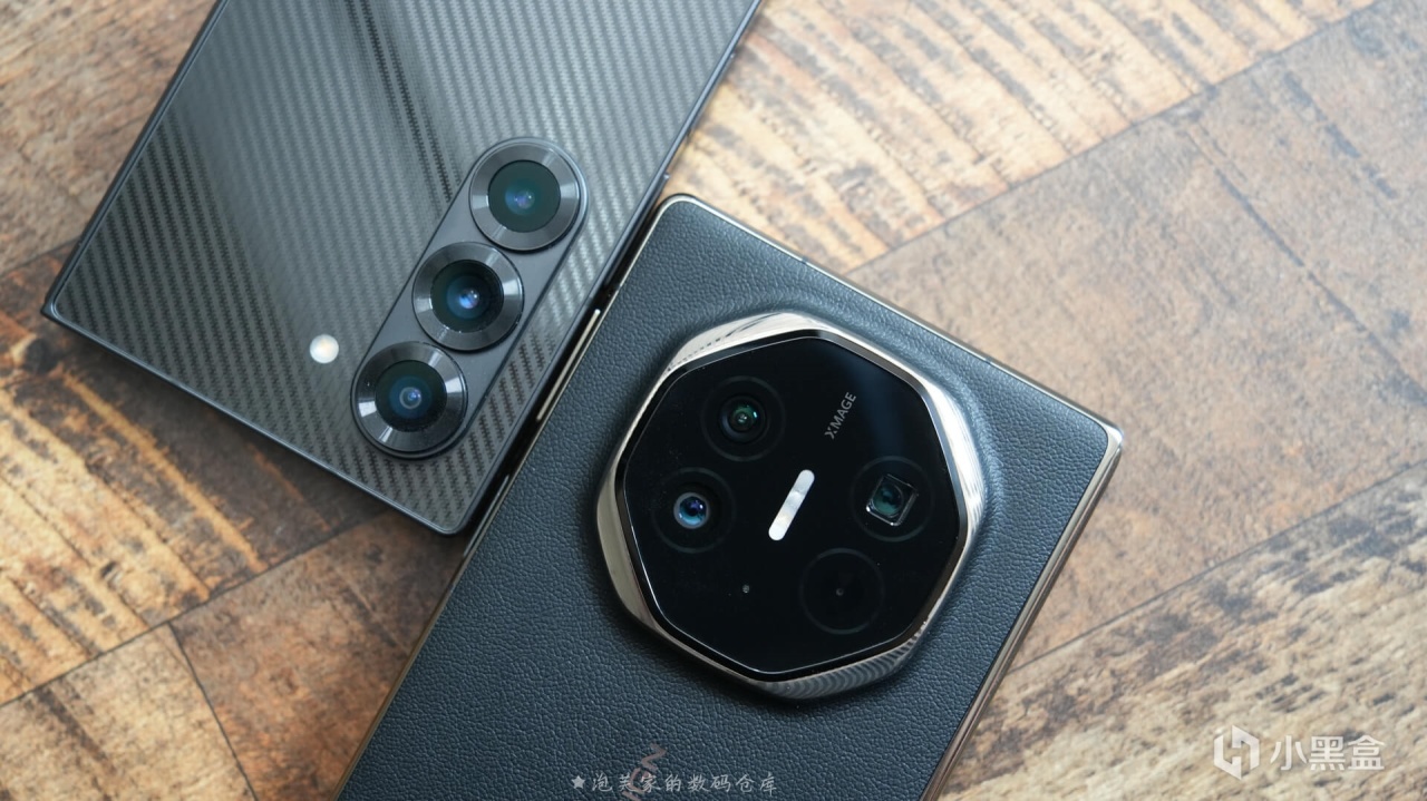 双屏模式下,MateXT的尺寸感更贴近日常使用习惯,不过因为机身稍大,握持时会觉得比ZFold6更轻;此时机身厚度7.45mm,考虑到一侧是折叠状态,这个厚度已经很出色了。相机模组的设计有点像荣耀MagicV3,和ZFold6比起来风格差异明显,喜欢哪种全看个人审美,我大圆环都不喜欢,这类也不喜欢,我个人更偏向三桑的。