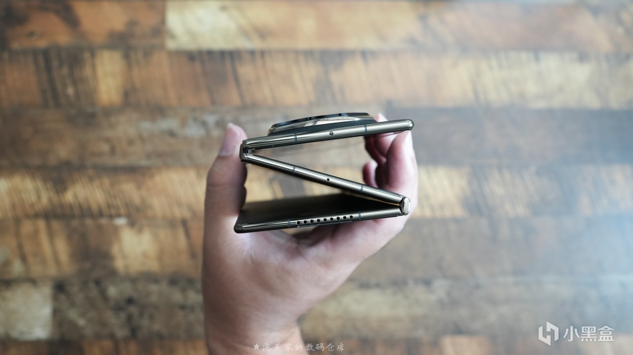 机身开合的手感也很特别,或许是因为价格昂贵,华为天工铰链系的100%核心部件采用1900MPa超强火箭钢,经26个精密凸轮调校,铰链硬度均匀,不像Z Fold6那样在特定角度会突然变硬,反而能轻松调节到想要的角度。不过问题在于,机身太轻太薄,展开时容易打滑;尤其是左侧外折的部分,折叠操作有一定门槛,若折叠顺序错误(如强行反向弯折),容易损坏屏幕和铰链,官网也特别提示避免在零下5度及以下环境弯折,使用时需格外小心,这点对新手用户不够友好。