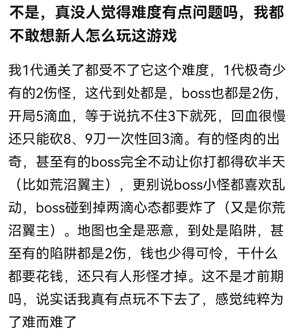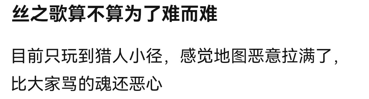 有吧友吐槽,丝之歌难度太高了,比起前作来说还要高,对新手真的不友好