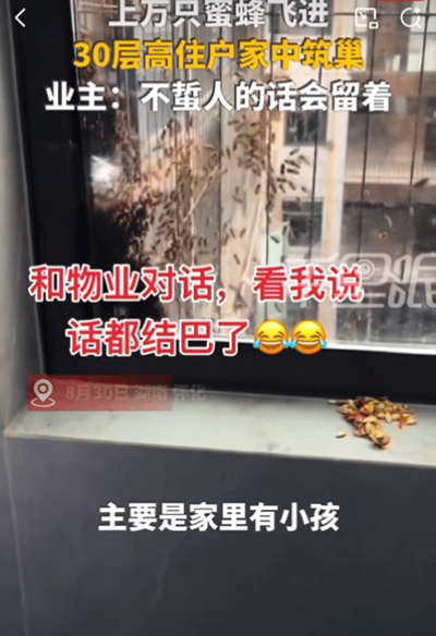 上万蜜蜂涌进30层住户家筑巢