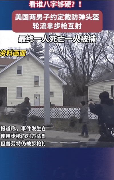 美两男子戴头盔拿枪轮流互射