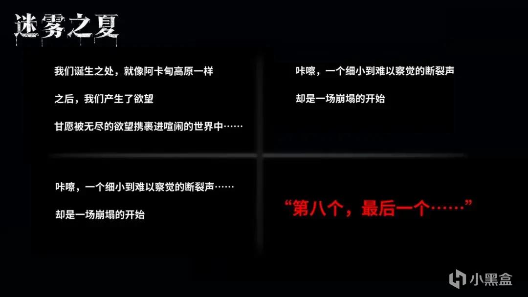 除了每個人的背景外,故事也深藏涼意,究竟是明面上的十個人相互猜疑,暗中謀殺,還是隱藏了第十一個人,在幕後操縱着一切?《迷霧之夏》,故事正在慢慢揭露這一切……
