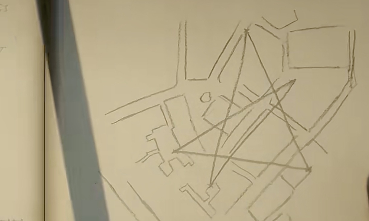 位置特征:城区街道拐角的建筑外墙,文字涂鸦显眼,极易寻找