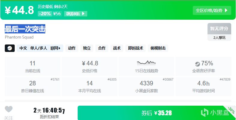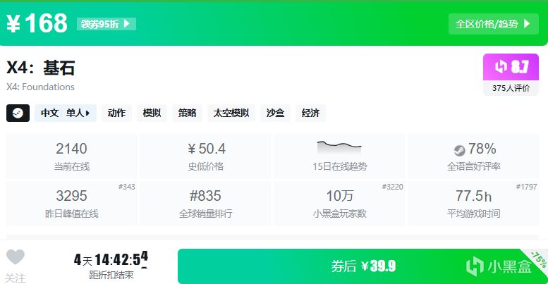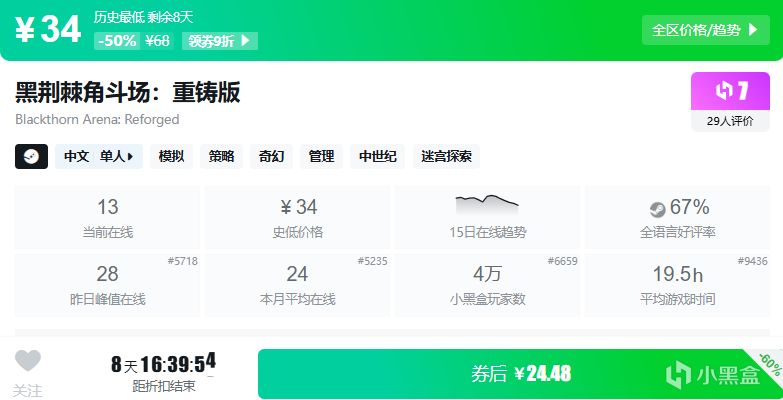 大家好,依舊是大家老盆友。今天給大家帶來新史低/超史低好玩佳作,加上小黑盒的開學折扣成爲超史低喲,有的遊戲折扣即將結束喲!希望大家喜歡,下面緊隨我的步伐一起來看看吧!