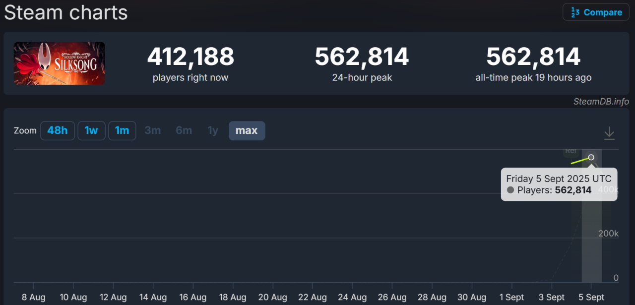 目前本作仍旧有40W在线,并且于昨日再次刷新在线峰值。
