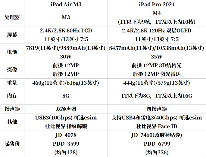 个人建议:个人认为是iPad里面兼顾性能和性价比最值的平板,拿来记笔记和玩其他平台同样锁60帧的二游体验独一档,败笔就在60Hz屏幕,M3芯片配60Hz屏幕和8G运存如同吕布骑狗。下一代iPhone史诗级升级120Hz和12G运存,因此说不定下一代iPad Air也有一样的升级,那样的话性能够用好几年的这个平板就显得有点小丑,买之前建议考虑一下这个可能。最后提一下这平板的和平精英没有适配2K分辨率,13英寸加价太多不建议