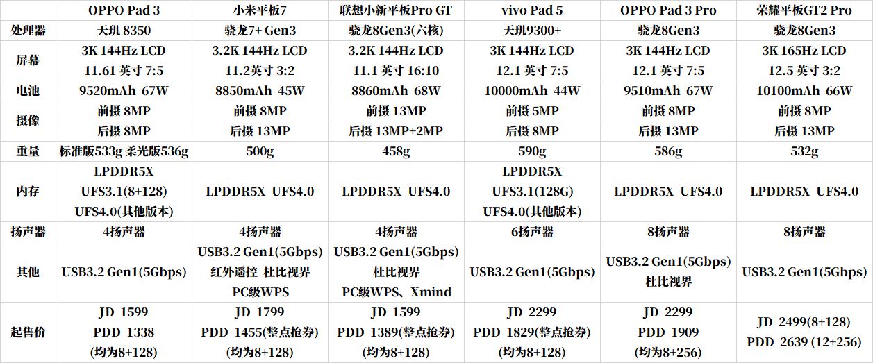 个人建议:这平板优点还是相对便宜的价格买一个各方面都不错的影音平板,毕竟用的骁龙8 Gen3,模拟器和串流都可以玩,虽说支持杜比视界,但看HDR视频和上面说的OPPO家平板一样有发灰问题,LCD平板就别想HDR方面的,这平板过了一年到现在基本上没有新的更新新内容了,用着如果不满意可以直接退不用想着还有优化的可能了,记笔记体验也是凑合。还有个套娃机一加平板Pro不推荐购买,扬声器差了点,最主要是散热设计有缺陷,导致游戏性能很垃圾,除非你为了这点差价愿意自己动手拆后壳改散热,总之一般人还是买OPPO好很多