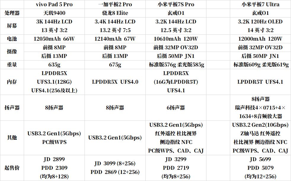 个人建议:推荐程度不高,只推荐vivo家用户购买,从搞个阉割闪存的最低配和用成本更低的天玑处理器高配卖的和别家用骁龙8 Elite一个价格就看得出来摆明是想着宰人的(截稿时好像最低配停产下架了),只能说降价空间很大,打游戏天玑9400也会比骁龙8 Elite差挺多的,性能释放比下面的一加怂,优点就是游戏适配比一加好(和平精英清晰度高了一截),vivo自家对平板的态度也挺敷衍,4月出的平板现在就开始消极更新了,只能说还好正常用还是没什么问题,想买还是可以买的,只是没什么性价比而已。有个套娃机iQOO Pad 5 Pro,同样哪个便宜买哪个