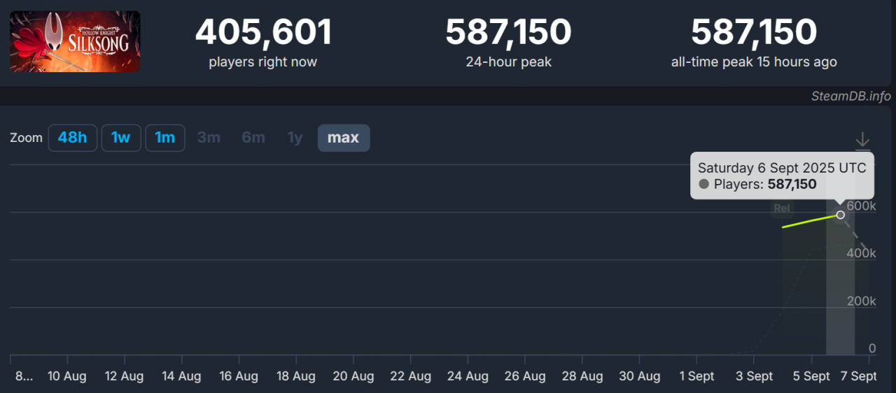 不过与此同时,我在《丝之歌》的旅途里也感到了许多让我欣喜的小设计,相信像我一样沉迷的玩家也不在少数,在线人数也是悄咪咪刷新了峰值,来到了58W。