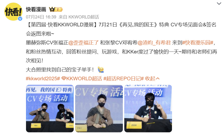 与此同时,伴随着国内声优的发展,各种线下见面会、声优访谈、漫展签售层出不穷,中文配音演员也开始从幕后走向台前。不少游戏都流行在开服前邀请CV老师进行一个简单的QA问答,展现CV对于角色理解和心路历程的同时,也让游戏的潜在玩家了解到该角色的特质,揭露配音演员的幕后工作。