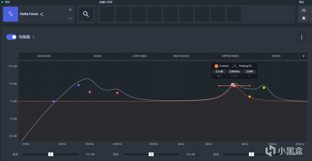 這是對軟件自帶的三角洲預設進行的微調,加高槍聲打藥聲以及腳步主要調整在4k、8k以及100-200Hz。