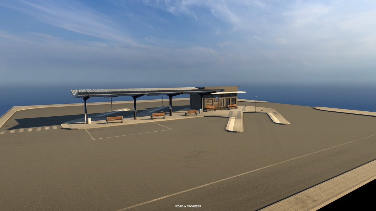 “在客車項目啓動時,ETS2 地圖內已有7個巴士站預製模型並使用在超過100個地點”,客車項目製作人 Dominik 解釋說,“我們的計劃是全面重製其中6個模型,因爲它們已有接近10年的歷史了。同時,來自我們的通往黑海之路 DLC 中的一個較新的預製件將得到小幅更新。一些佈局將保持相似,但其他一些則將基於現實位置得到全新設計。與被柵欄或牆壁圍着的舊預製件不同的是,新的預製件允許我們移除它們,這樣車站可以更自然地與環境融合。這聽起來感覺最初製作的這些車站好像有些浪費,但並非如此,這些預製件很好地起到了佔位符的作用,正是有了它們,我們現在可以進行重建,並在地圖已準備好超過100個客車站。”