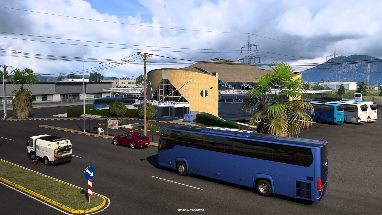 不過,並不是每個你們遇見的巴士站都是遊戲內已有的。事實上,遊戲內增加了許多新的站點以改善歐洲各地的整體車站分佈。“我們檢查了車站的分佈情況,並努力覆蓋儘可能多的空白區域,還在大多數主要城市增加了客車站”,Dominik 解釋說。 “在有的地方,我們的地圖設計師已經構建了定製的客車站,這就類似於定製貨場。在其他一些地方,我們還沒有任何靠近市中心或現實中的客車站位置的站點,所以我們必須即興創作,使用一個小型站點,而它們實際上有時會被客車停靠使用。”