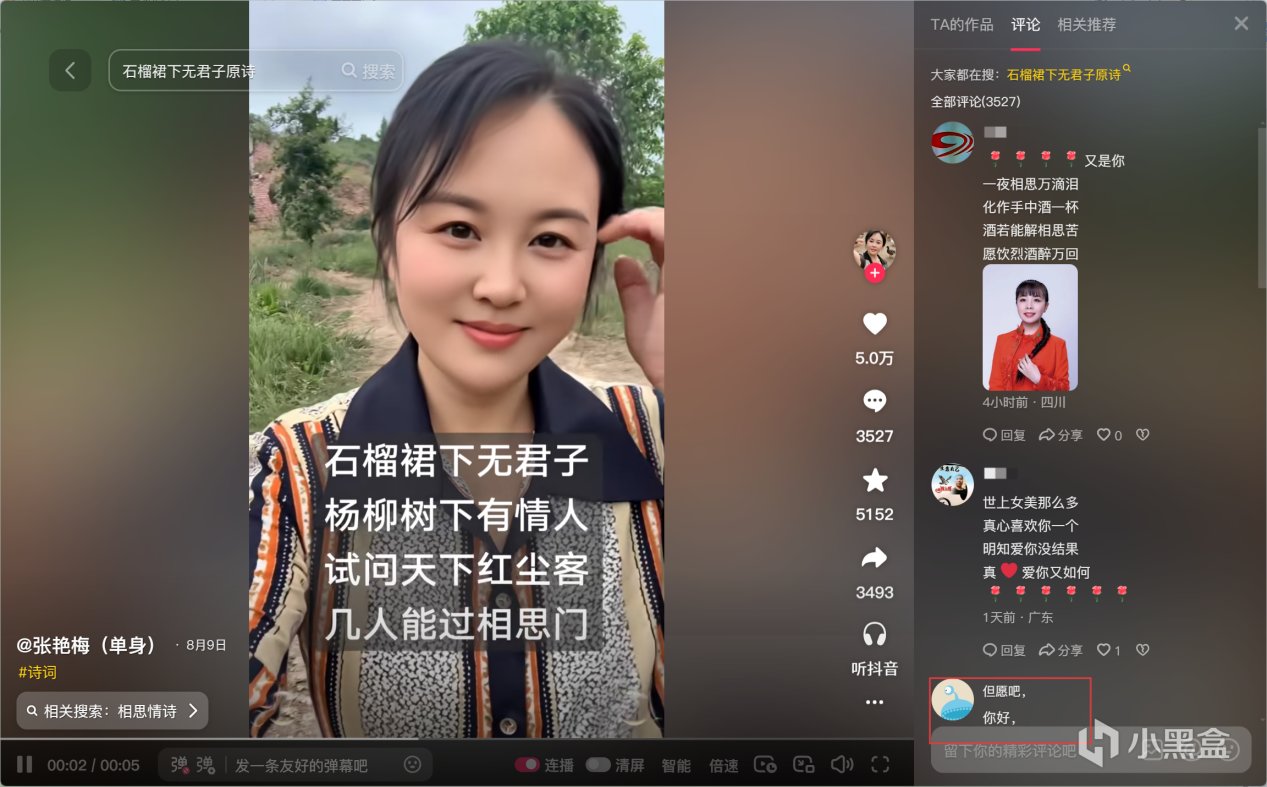 坏消息是,白城魅魔现在的大号已经设置私密了,我们很难再继续深挖大姨过往的种种挑逗话术,和那些纯爱老登们的逆天爱情宣言;而好消息是,白城大姨的这波名声,已经让网上出现了不少蹭热度的选手。除了一家白城当地的烧烤店老板,发视频招呼纯爱老登们“来都来了,吃顿烧烤再走”外,还出现了一位大姨年轻版的平替——另一位来自白城的开美容店的大姐,她也把自己的ID改成了“被刺痛的 心”,并用两个账号发布了高仿白城大姨的视频,又是做菜等老登吃饭,又是说要帮老登洗衣服,虽然没有大姨那么成熟的韵味,但对纯爱老登们来说,这个版本应该也足够有吸引力了。