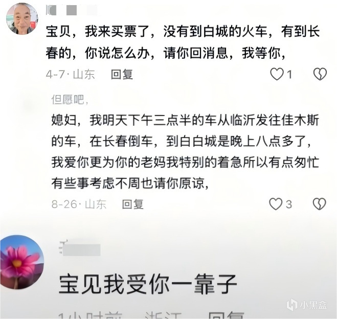 或许,你会觉得我这样的表述有些虾头,但实际情况就是,被大姨这套“来白城看我”小连招忽悠到的中等老登们,的确不在少数。他们汇集在大姨的视频评论区内,和曾经疯狂追星秀才的大妈们一样,除了随处可见的“宝见我受你一靠子”的真情告白外——看得出来老登们确实不太会用智能手机打字,还有无数老登更是直接一言不合就为爱冲锋,买了张来白城的票后,就准备像视频里大姨说的那样,直接奔现领证一条龙服务送上门。而网友们也将其非常形象地总结为“南登北调”,让大姨和老登们的爱情故事,迅速在网上成为年轻人们围观的乐子。