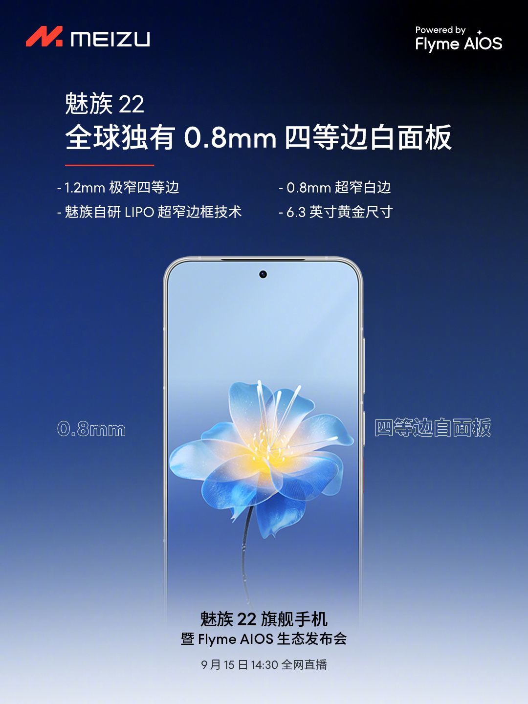 - 屏幕:6.3英寸,1.2mm极窄四等边,0.8mm超窄白边,搭载魅族自研LIPO超窄边框技术。