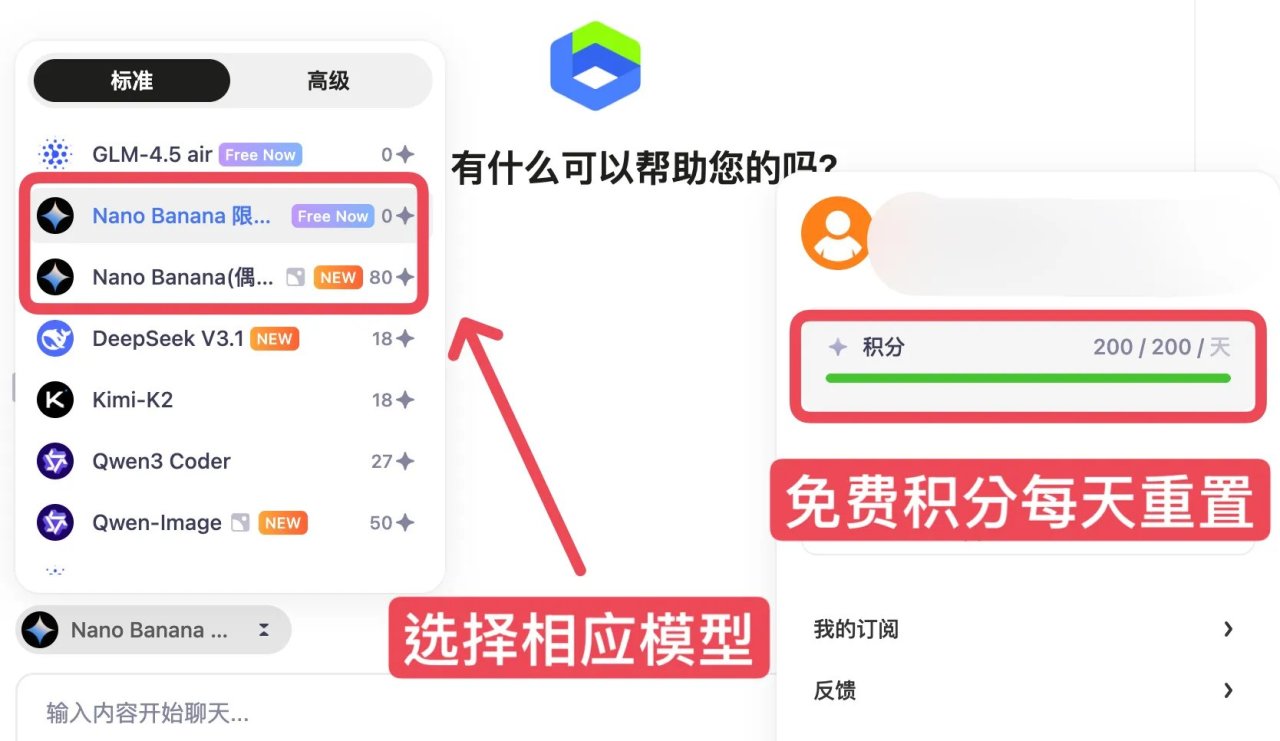 作为 Nano Banana 的官方入口,Gemini 提供最稳定的体验。只需切换输入框到“图片模式”,就能直接体验 Gemini 2.5 Flash Image Preview 的全部功能。