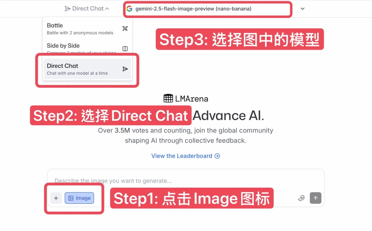LMArena 主打“开箱即用”,无需注册登录。进入后即可直接调用 Nano Banana 模型,适合想快速测试功能的用户。