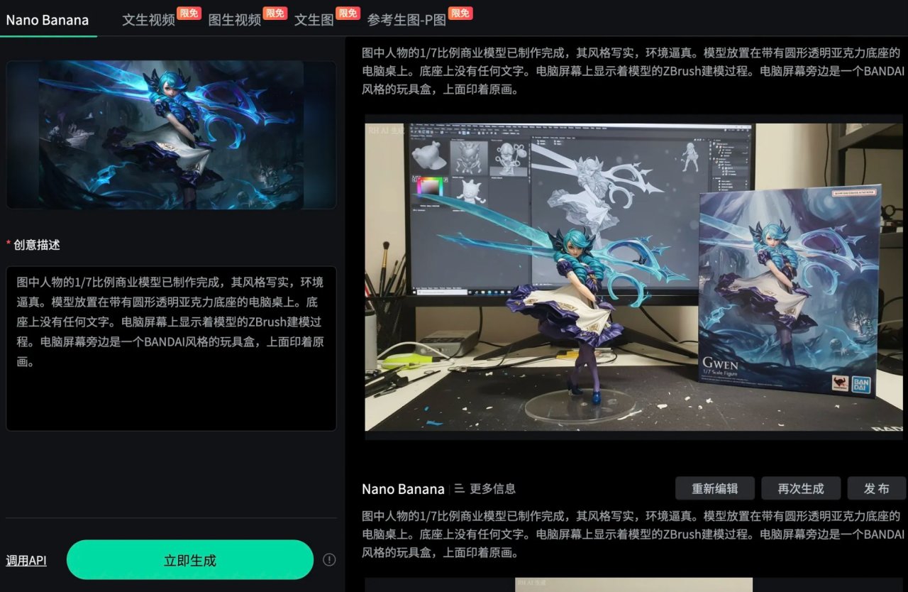 Nano Banana 是谷歌最新推出的多模态模型代号,正式名称为 Gemini 2.5 Flash Image Preview。它支持 文本+图像生成,可以用于手办设计、图片风格迁移、创意绘图等场景。