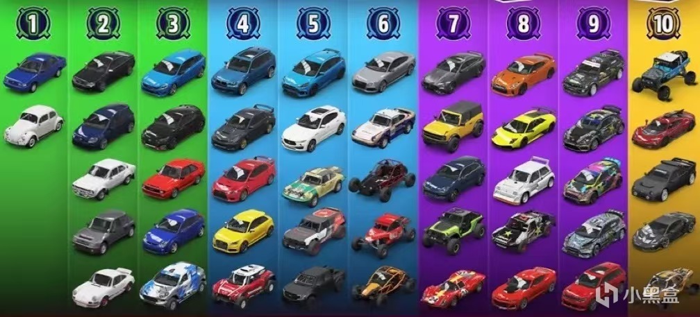 六級最強Rs7,A7是理想,S7是夢想,Rs7想都不敢想,遊戲中也十分強悍,誰開誰知道。第二就是959了,性能均衡,就是走連續坑窪路段容易翻。第三就是包公帽了,沒有缺點,就是極速只有220。第四顯卡蹦子,不好評價這個車,有點樹枝石子它就動不了了,雨林圈噩夢,極速還可以。最後就是鴨腦殼,名字起的很好(Nomad,看到它的時候不要生氣),不知道爲啥,非常喜歡頭朝下犁地,人送外號“磕頭王”,六級最弱非它莫屬。