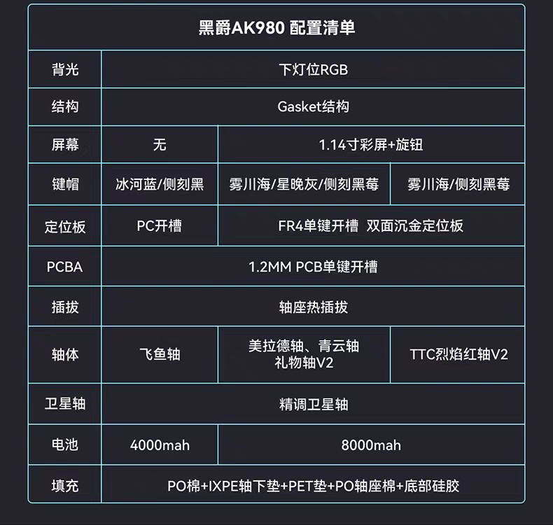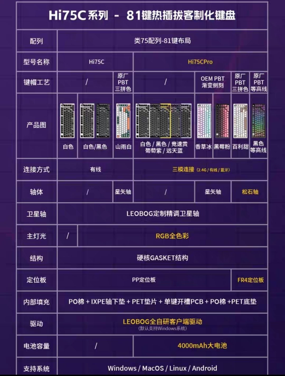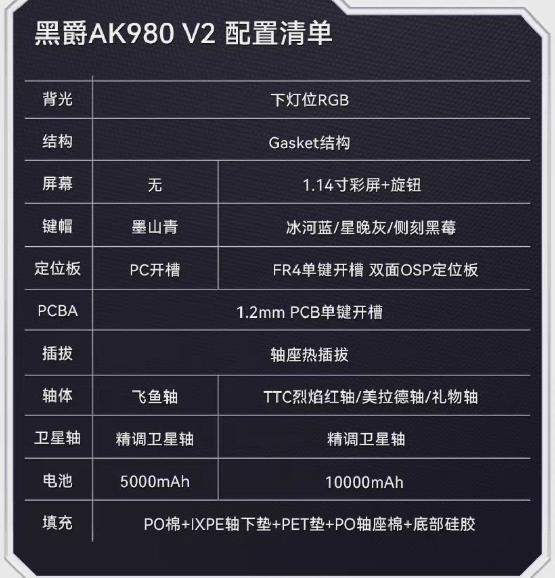 有标配版和高配版,分别199起和259起。采用2U0 98配列,兼顾数字小键盘和紧凑布局,不占太多桌面空间,办公、游戏都好用。