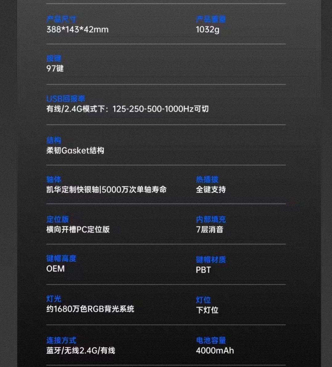 8000mAh大电池实测了一下 两周疯狂使用也没充电,FR4沉金定位板加持手感,再加上三模连接和热插拔设计。