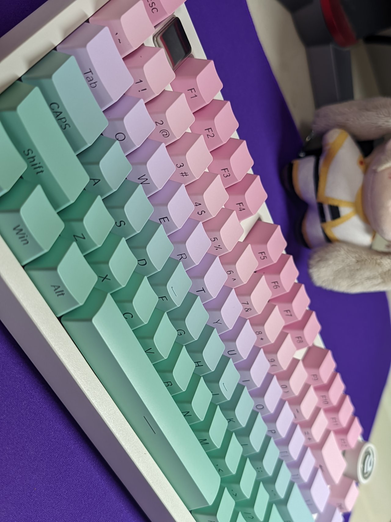 而我个人使用的主力为68配列磁轴(玩FPS)和一把75配列红轴(打字),75配列保留F区、方向键、Del,日常使用也更方便。