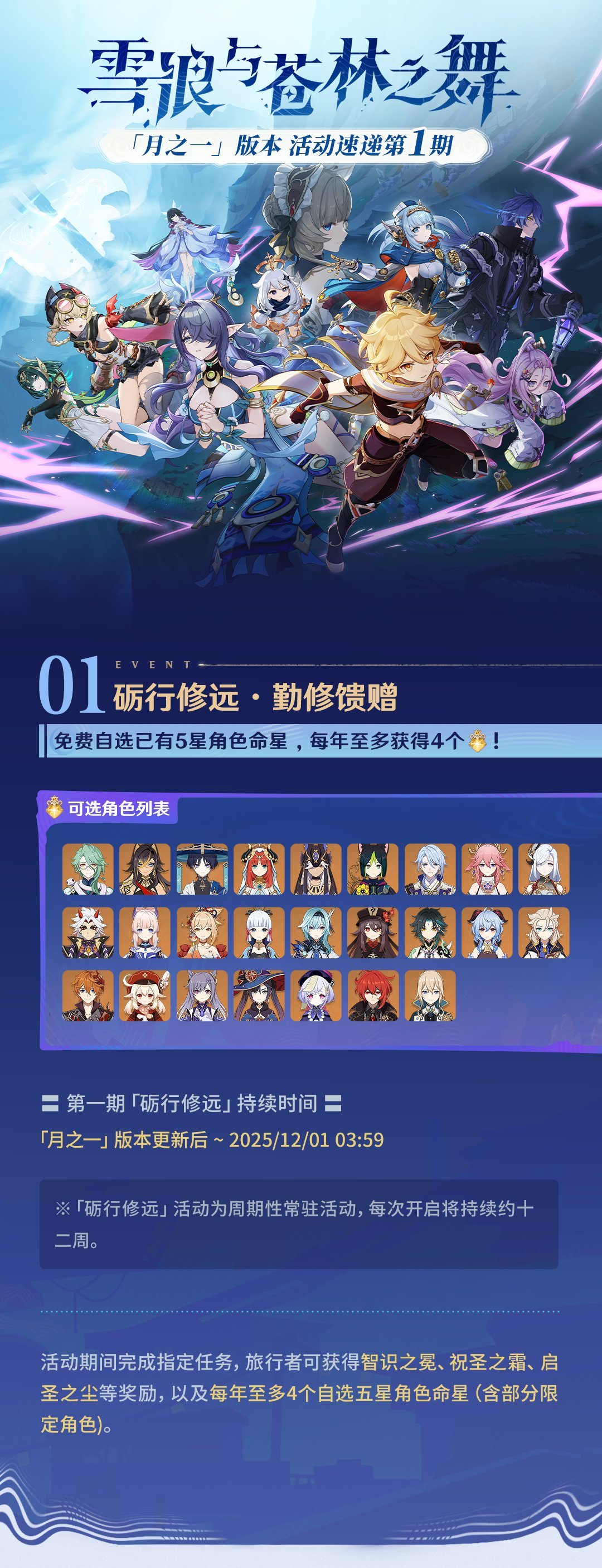 4. 命座自选活动:通过完成每周委托(8周内完成4委托+消耗120树脂任意5天),可获得1个「自选角色的命星」,每年最多可获得4个