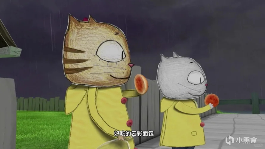 他们发现爸爸没吃早饭就去上班,便拿着云彩面包飞在城市上空,给堵在公交车里的爸爸送去面包,让爸爸也飞起来去上班。