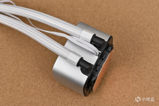 水冷頭側面爲銀色鋁合金材質,陽極氧化工藝,觸感細膩。