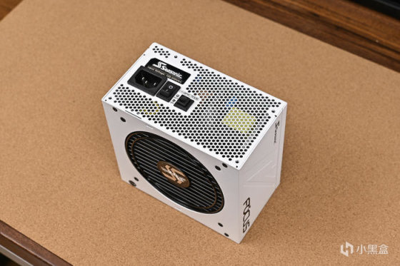 電源的尾部,左側是供電口,上面有金屬銘牌,中間是電源開關,右側是電源模式選擇,有靜音和靜冷兩種模式。
